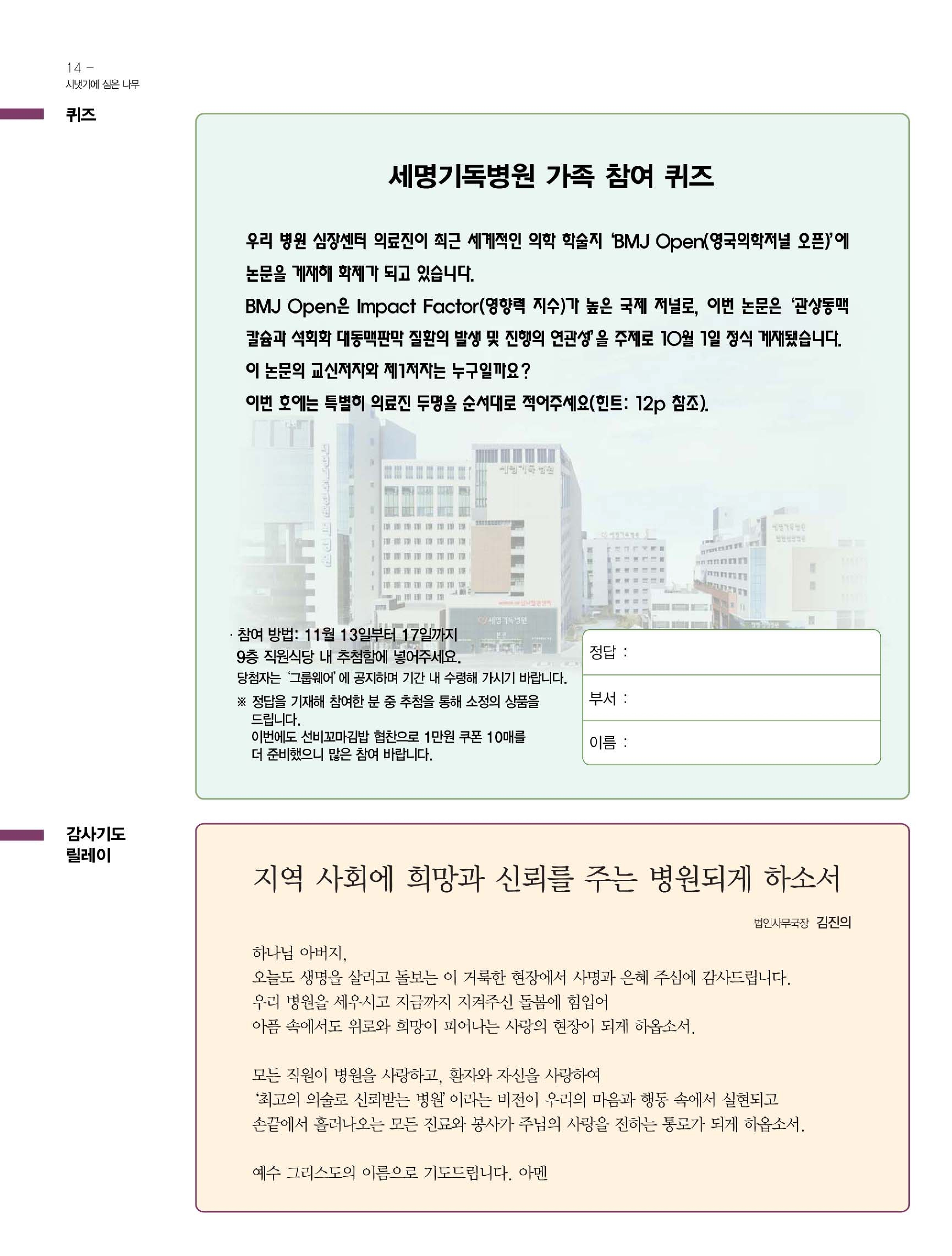 세명기독병원 곳곳의 다양한 소식을 알차게 담았습니다~🌸