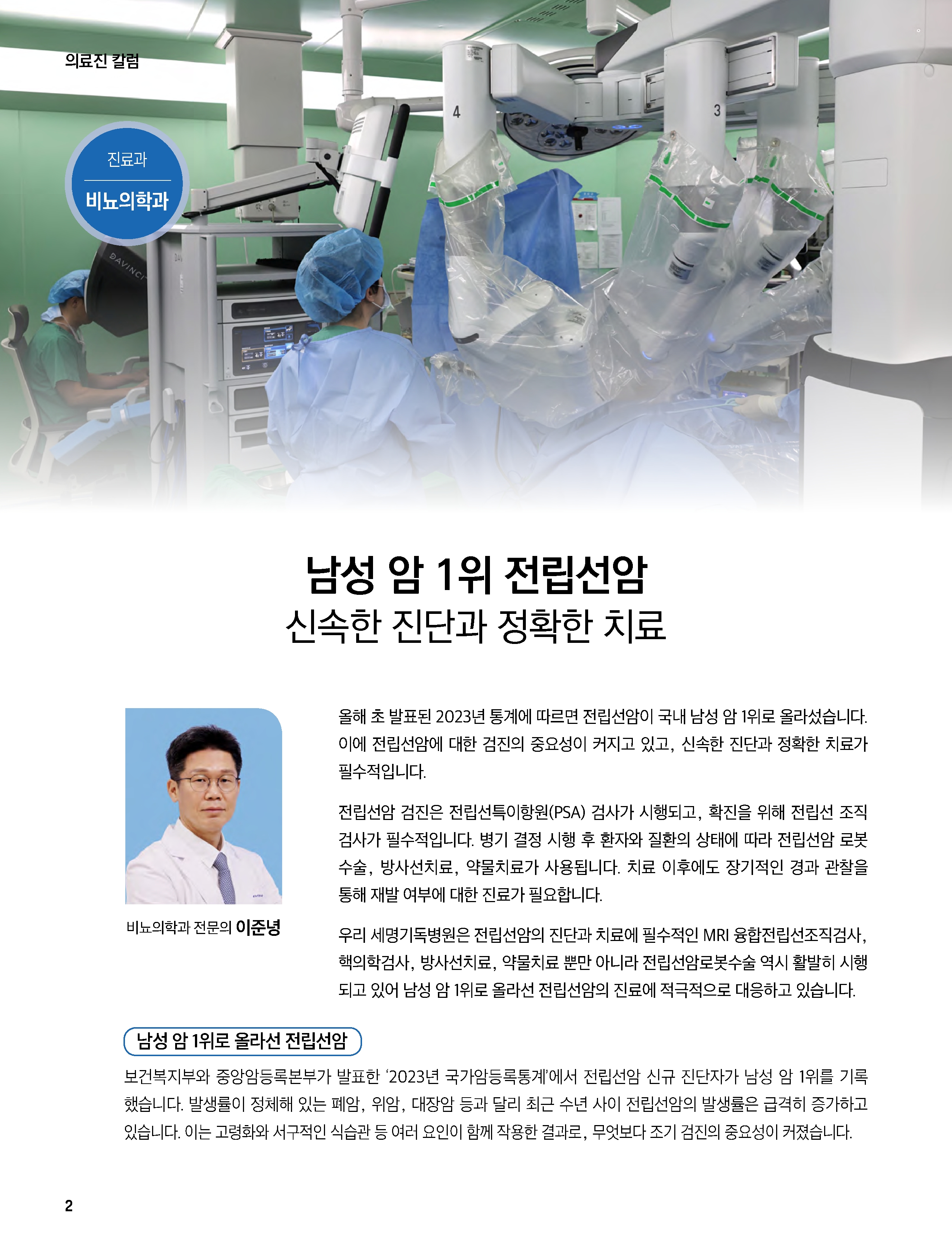 ‘남성 암 1위 전립선암, 신속한 진단과 정확한 치료’
