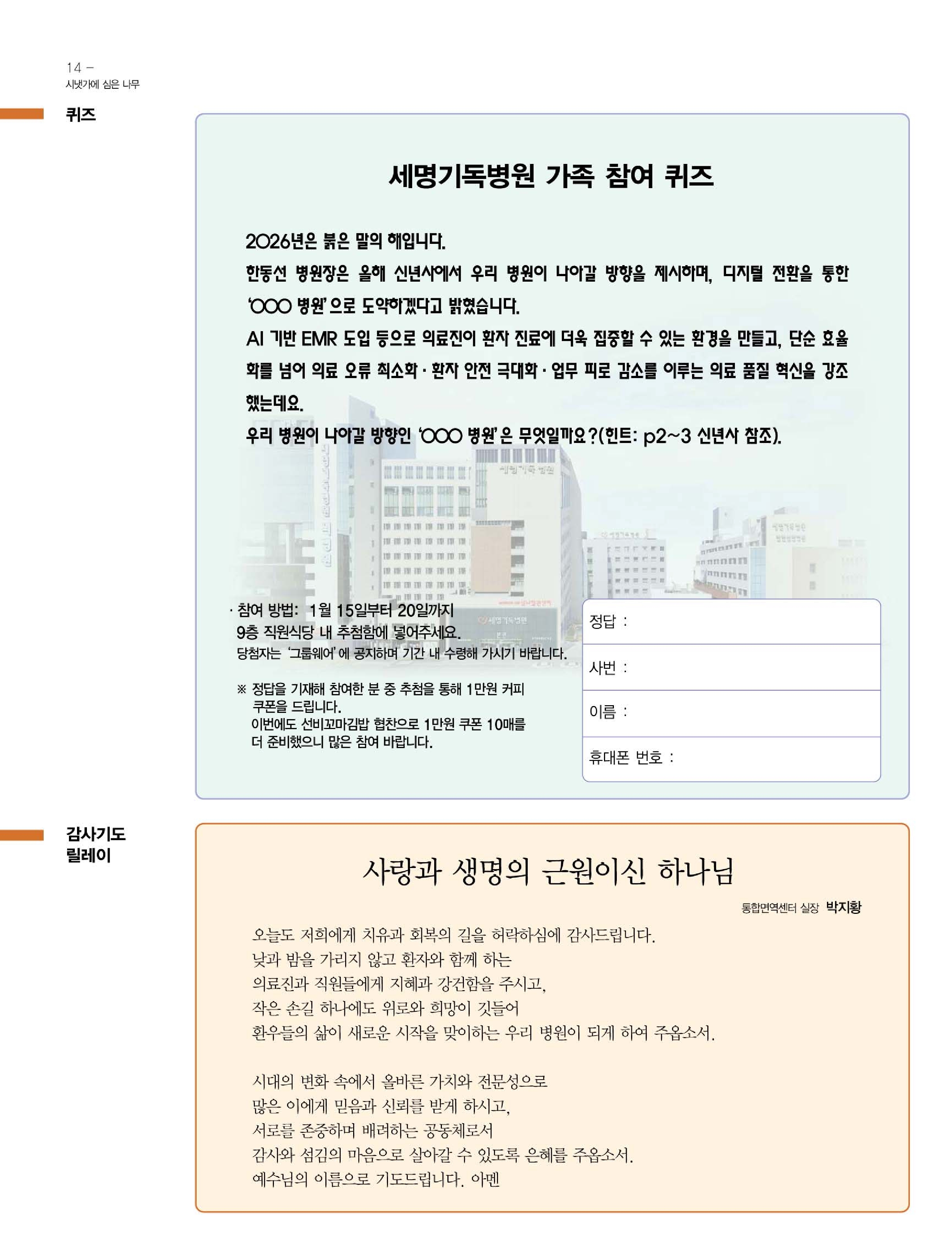 2026년 첫번째 시냇가에 심은 나무, 1호가 발간됐습니다☺️