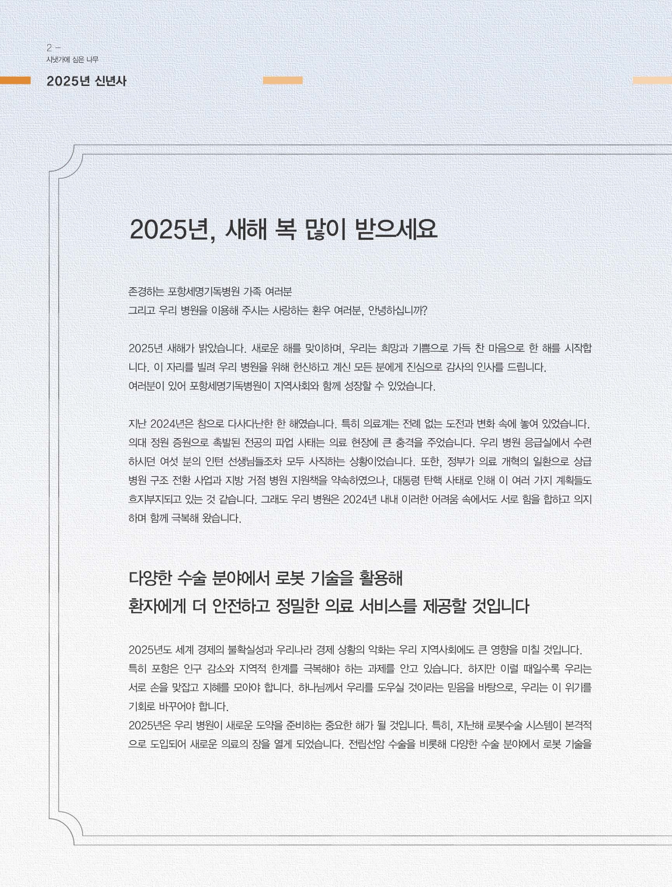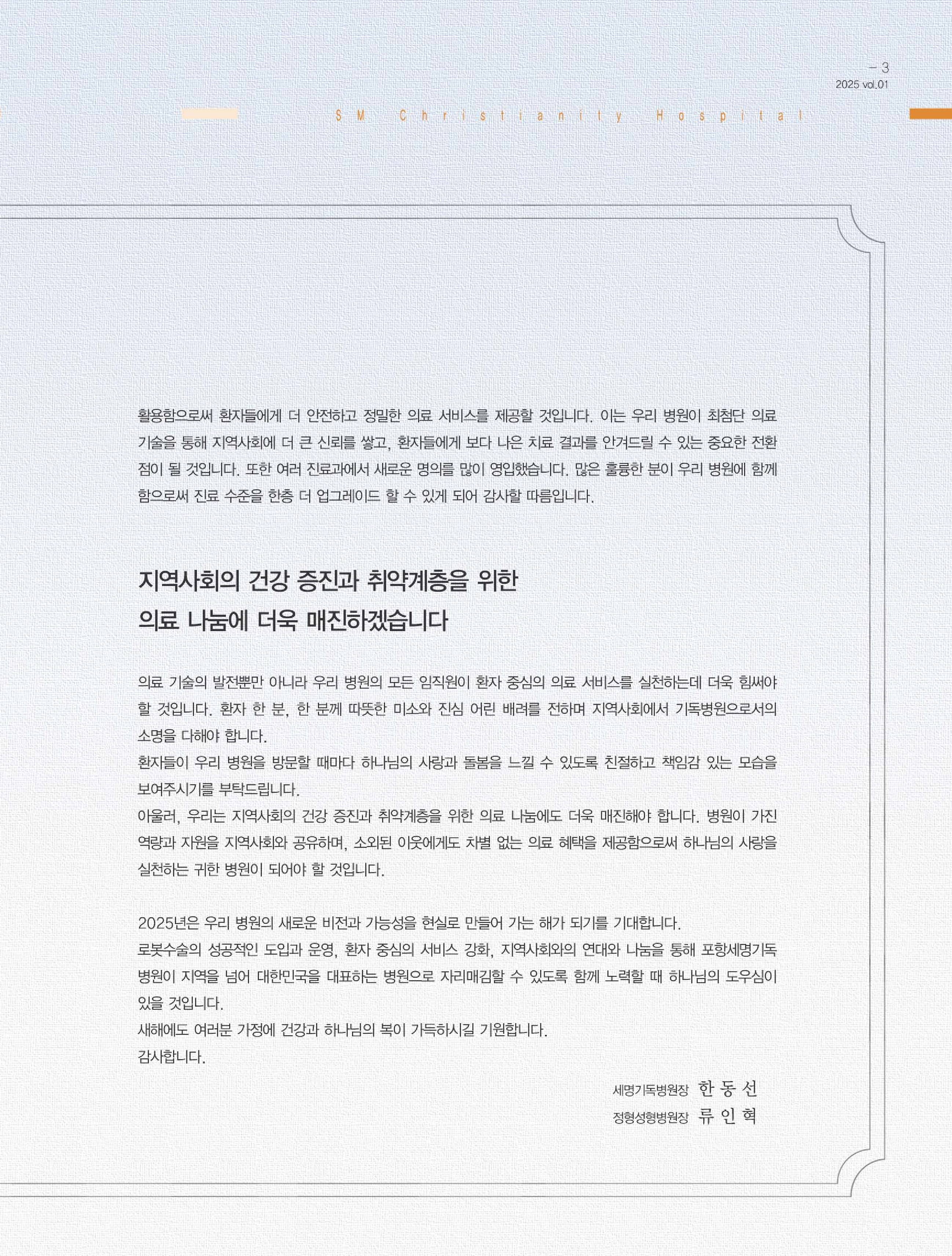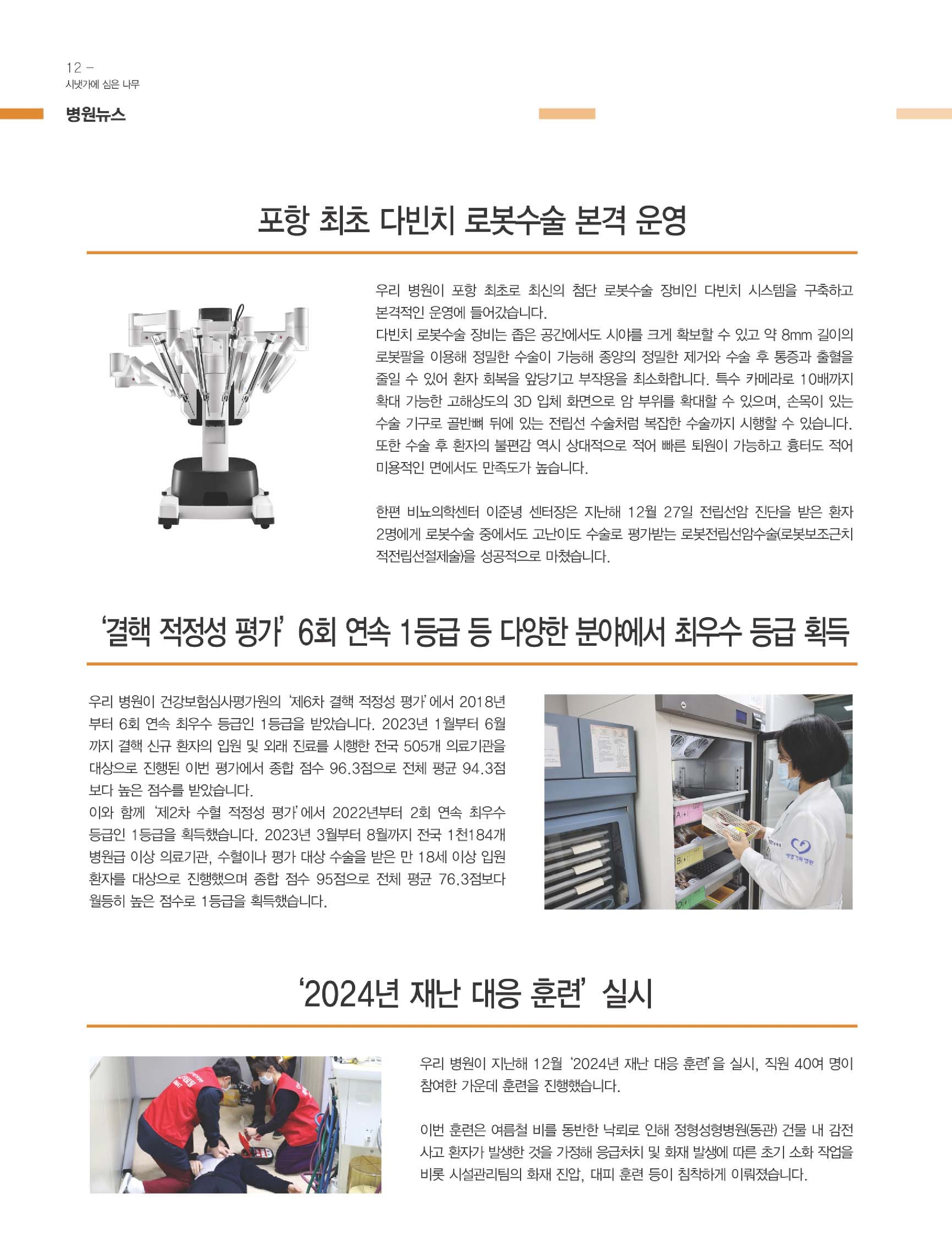 앞으로도 포항세명기독병원이 여러분 곁에서 든든한 건강 파트너로 자리할 수 있도록 많은 관심과 성원 부탁드립니다.