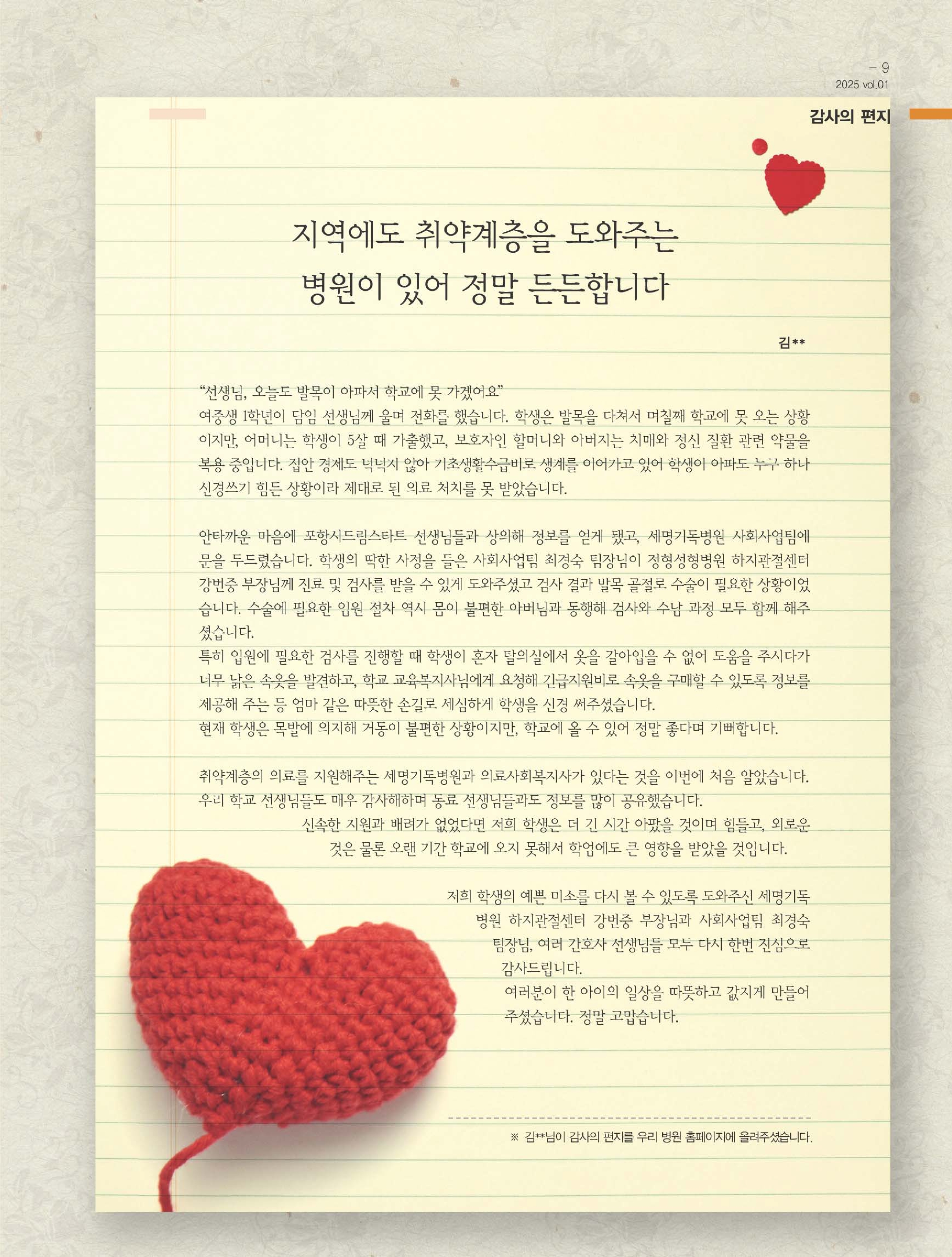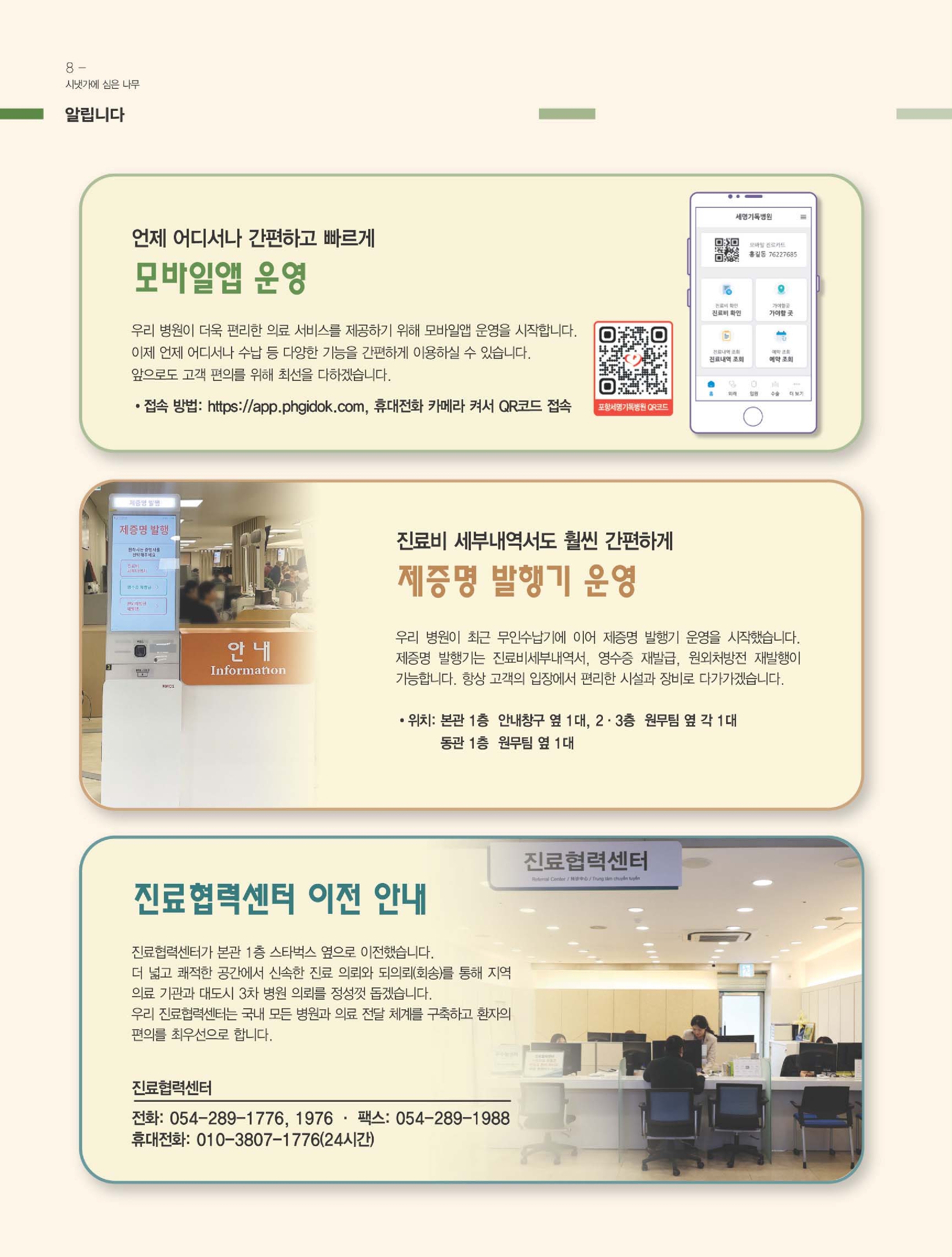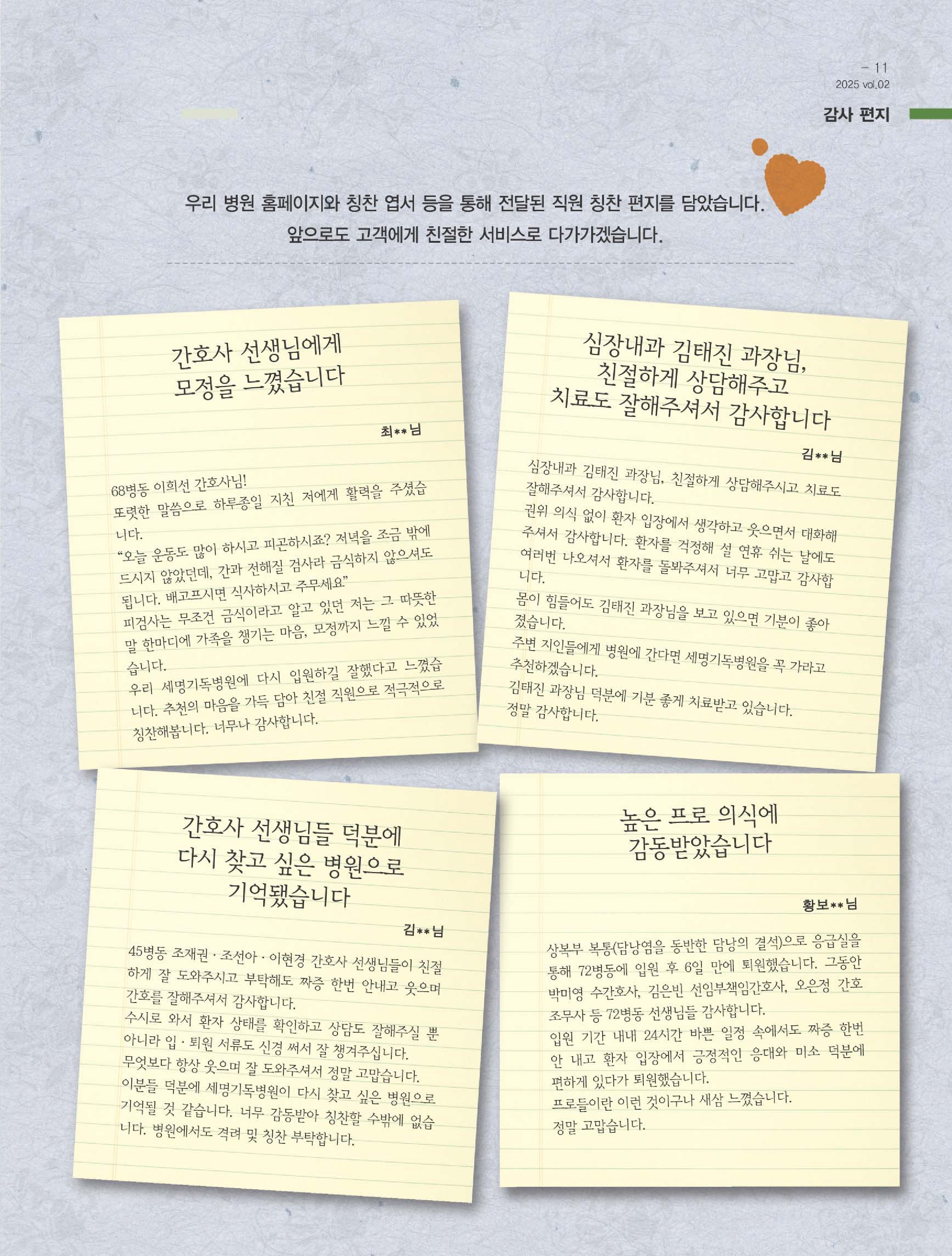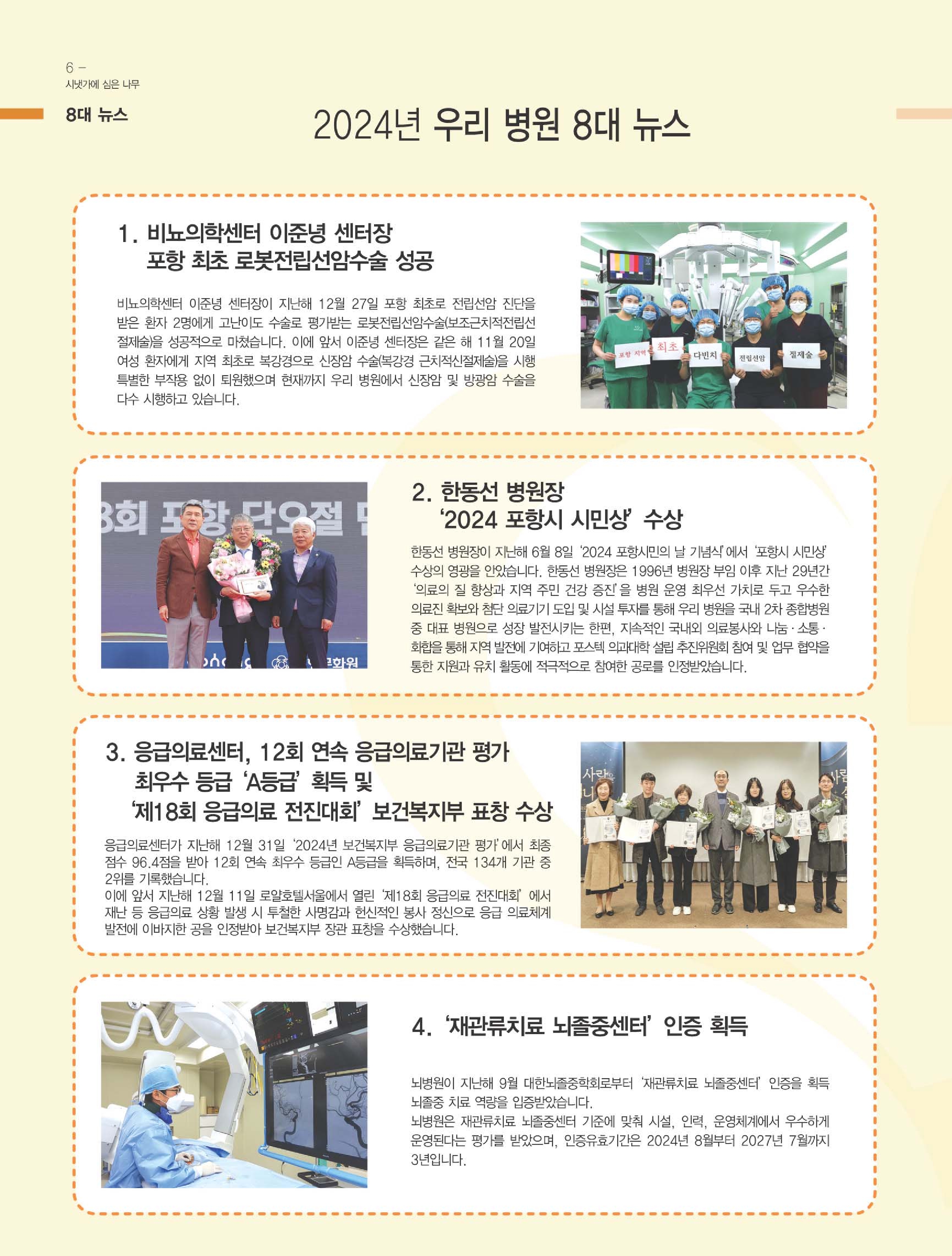 앞으로도 포항세명기독병원이 여러분 곁에서 든든한 건강 파트너로 자리할 수 있도록 많은 관심과 성원 부탁드립니다.