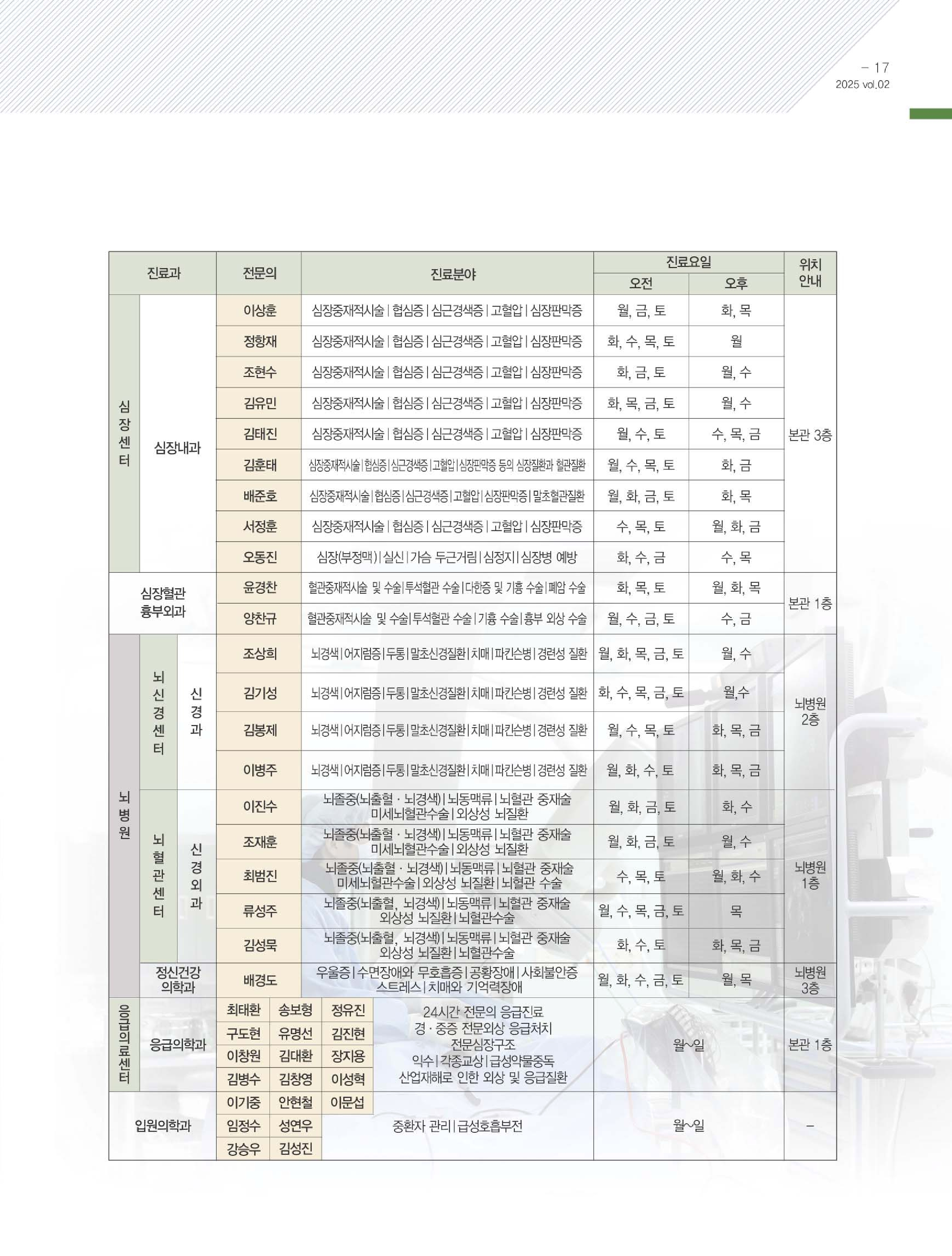 뇌병원 역시 지역민의 뇌 건강을 책임지며 뇌졸중, 뇌혈관 시술 등 다양한 분야에서 전문성을 인정받고 있습니다.